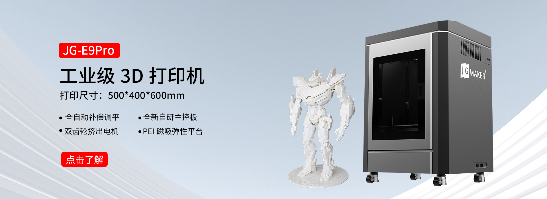 成型尺寸 500*400*600mm,擁有更強大的打印能力和打印精度,雕細琢每一個細節,全新升級,全自動補償調平,打印模型堪比藝術品