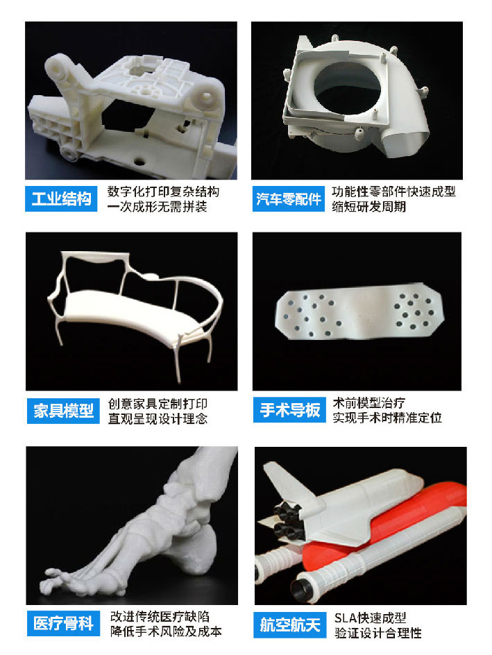 極光工業(yè)級SLA光固化3D打印機(jī)更是適配多種耗材,它支持透明、耐高溫、高強(qiáng)度等不同屬性的樹脂耗材,全方位滿足各行業(yè)客戶對材料特性的需求。廣泛用于醫(yī)療、文創(chuàng)、汽車、建筑、工業(yè)、航空航天、鞋類生產(chǎn)、教育、動(dòng)漫等眾多領(lǐng)域。