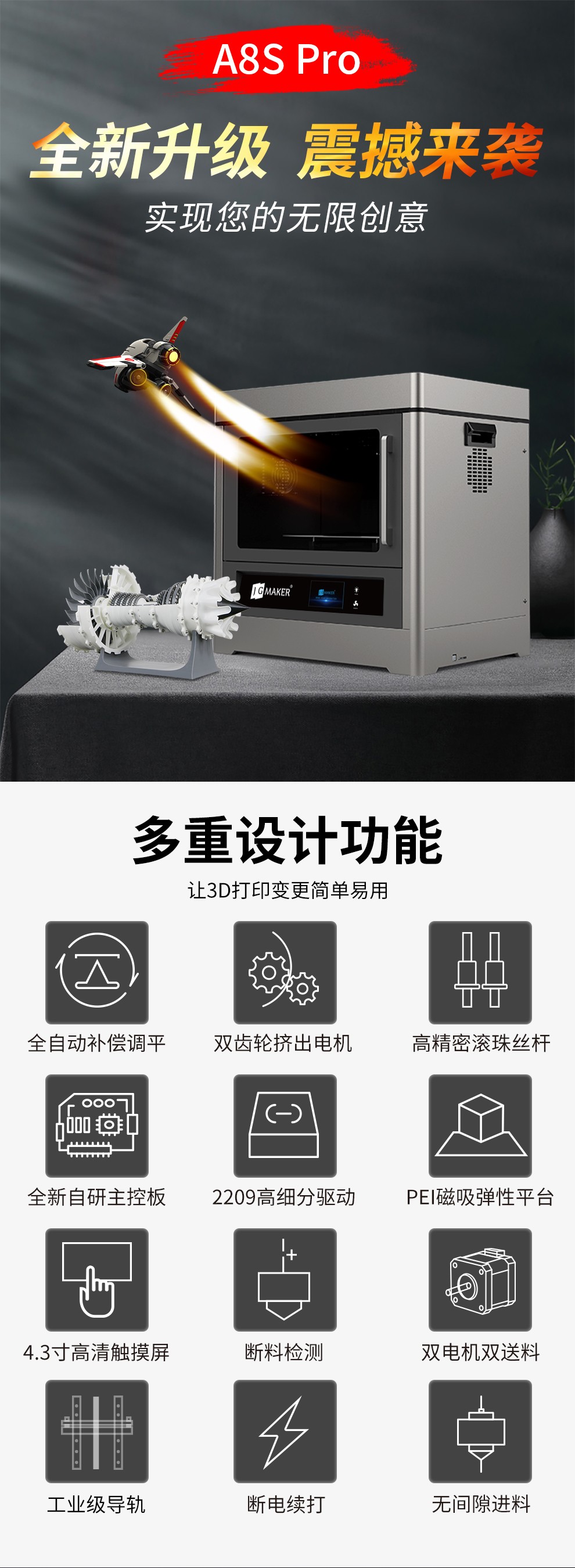 JG-A8S Pro 工業級3D打印機