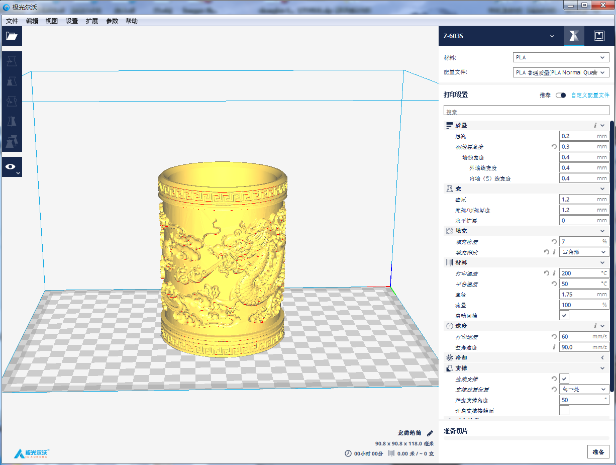 選擇“連接打印機”,將我們的電腦與打印機連接起來。極光爾沃的3D打印機是支持脫機打印的,如極光爾沃的3D打印機。只需要事先把模型文件發送到SD卡,再將SD卡插到打印機的卡槽中,待打印機將文件正確讀取后,即可打印。(注意:打印機不識別中文名,中文名或特殊字符或者名字太長超過32字符的需手動改名,英文或數字即可)
