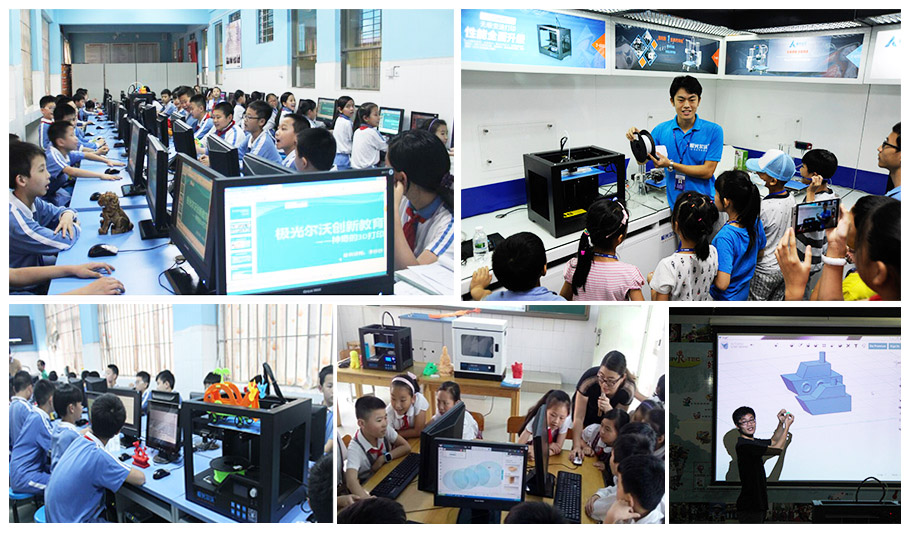 極光爾沃聘請(qǐng)專業(yè)教師團(tuán)隊(duì),建立3D創(chuàng)新教育實(shí)驗(yàn)室,基于3D打印的優(yōu)勢(shì)和特性,開發(fā)出了一套體系化的符合目前